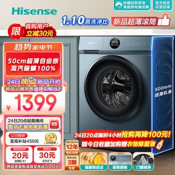 海信(Hisense)滚筒洗衣机全自动 10公斤家用大容量 500mm超薄 以旧换新 BLDC变频 除螨洗 HG100DJ12F到手价格不高于1499元